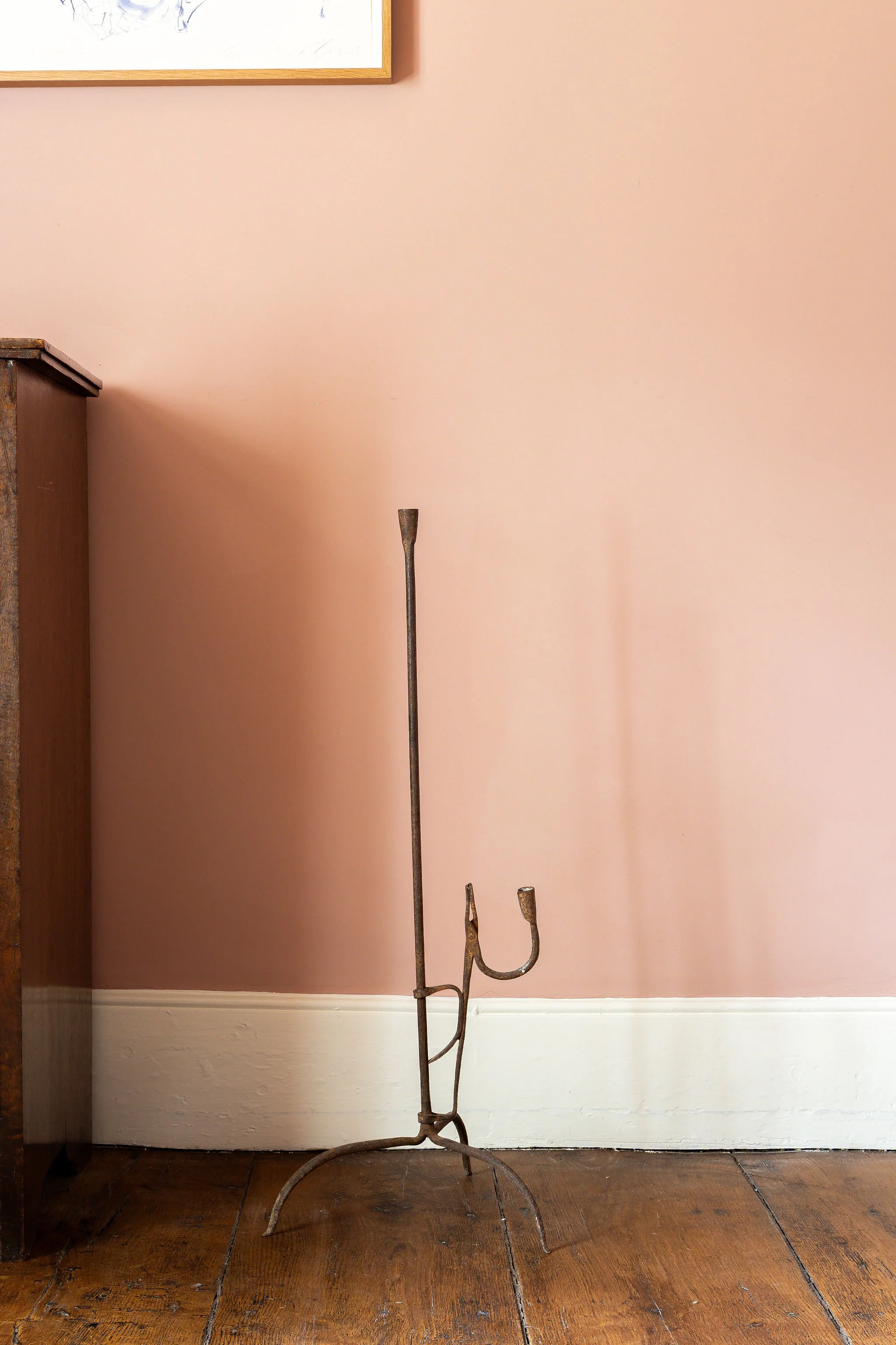 A tall tripod-based 18th Century Irish lamp stand designed to hold multiple rush lights. Used before oil or candle lighting, this is a rare and attractive survivor of primitive Irish lighting.