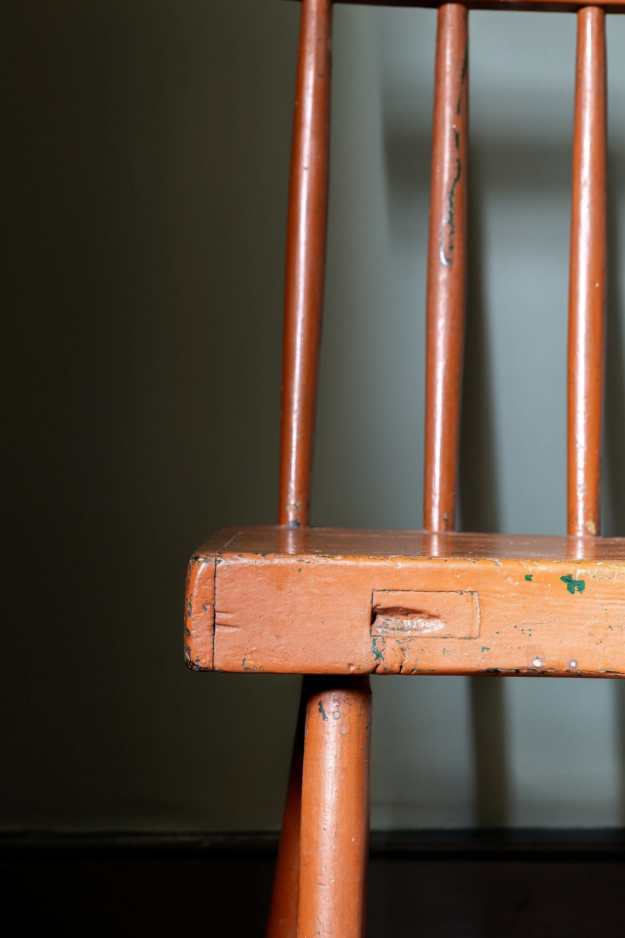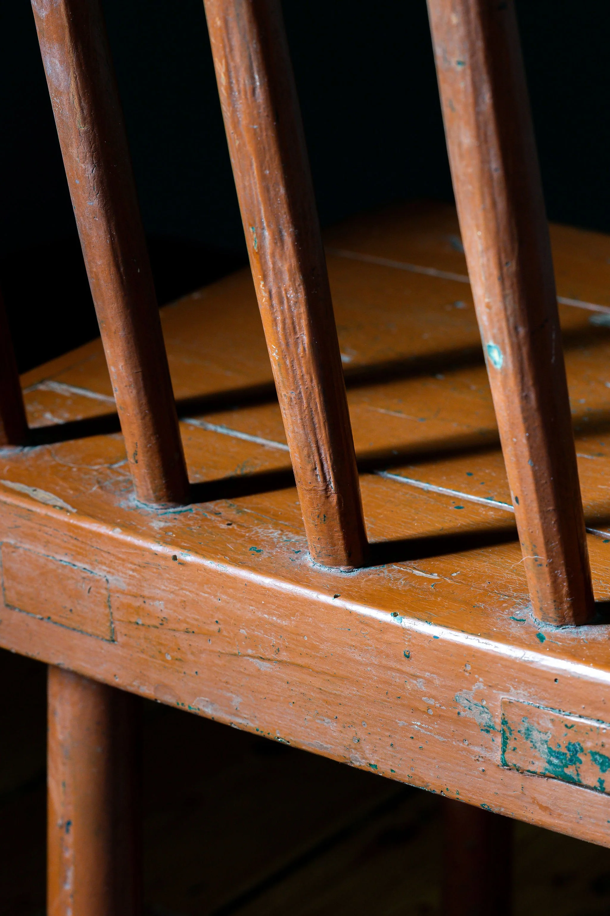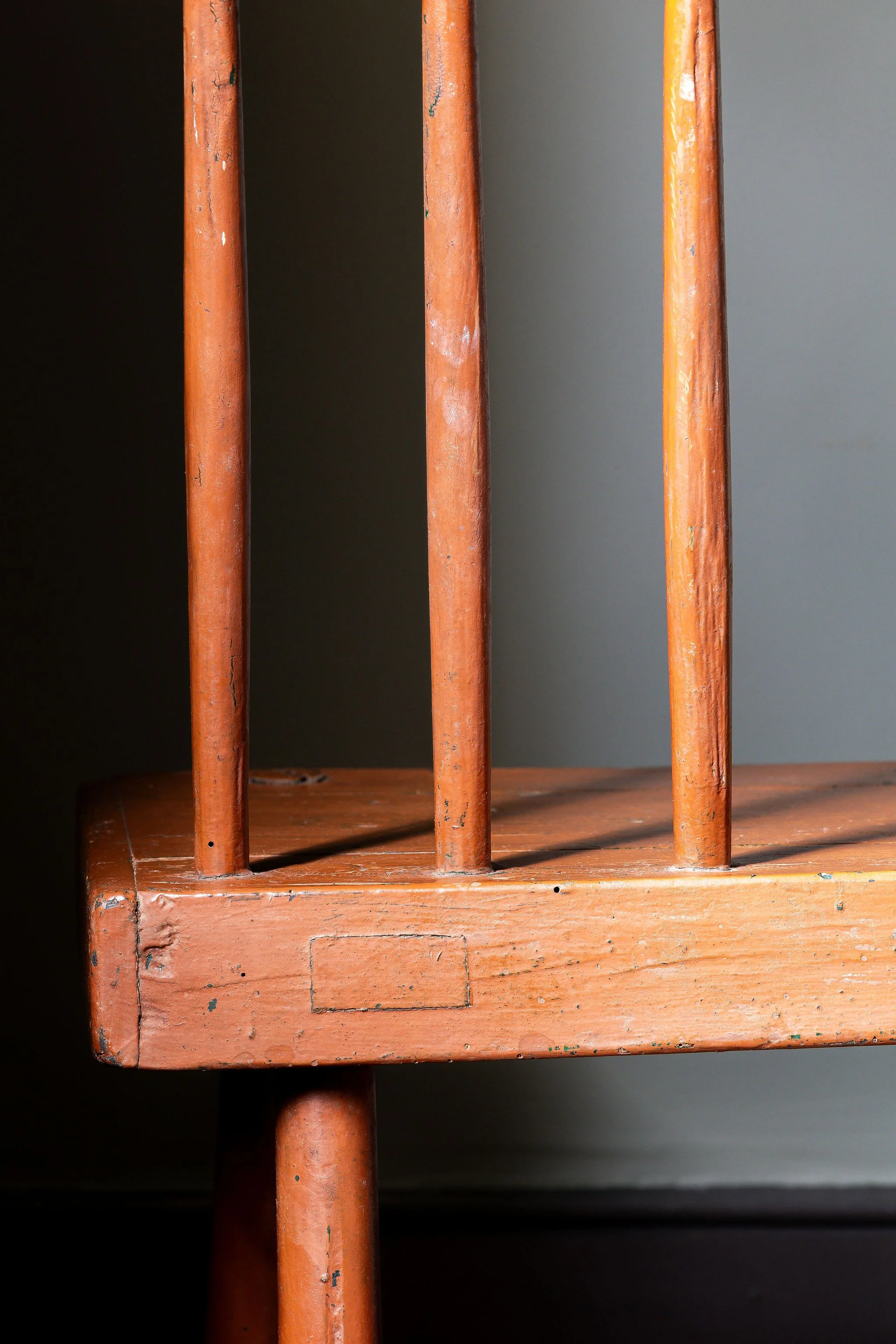 An attractive 19th Century Irish Hedge chair of traditional construction with historic red paint. A very pretty piece of Irish vernacular seating.