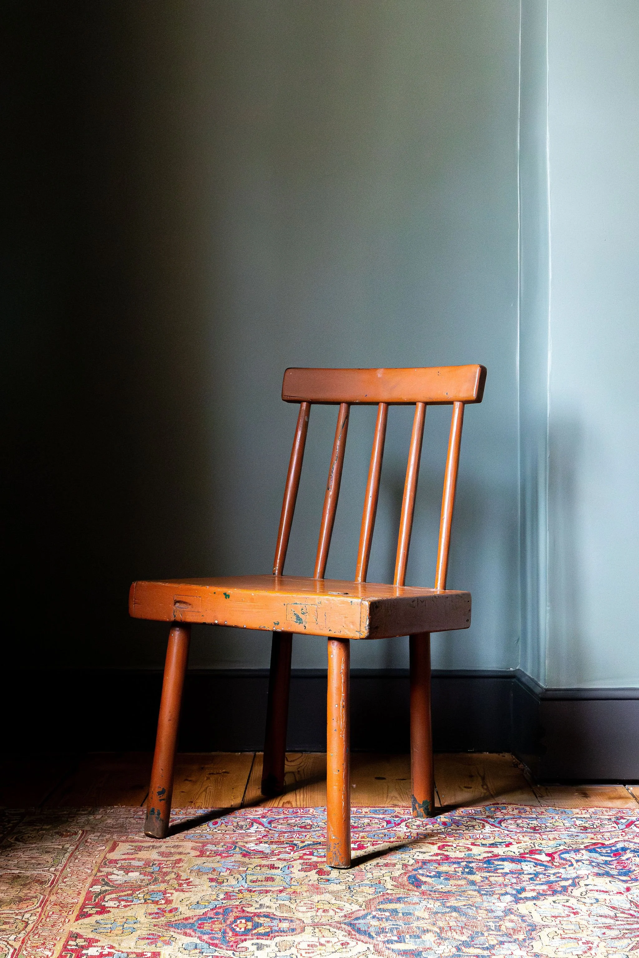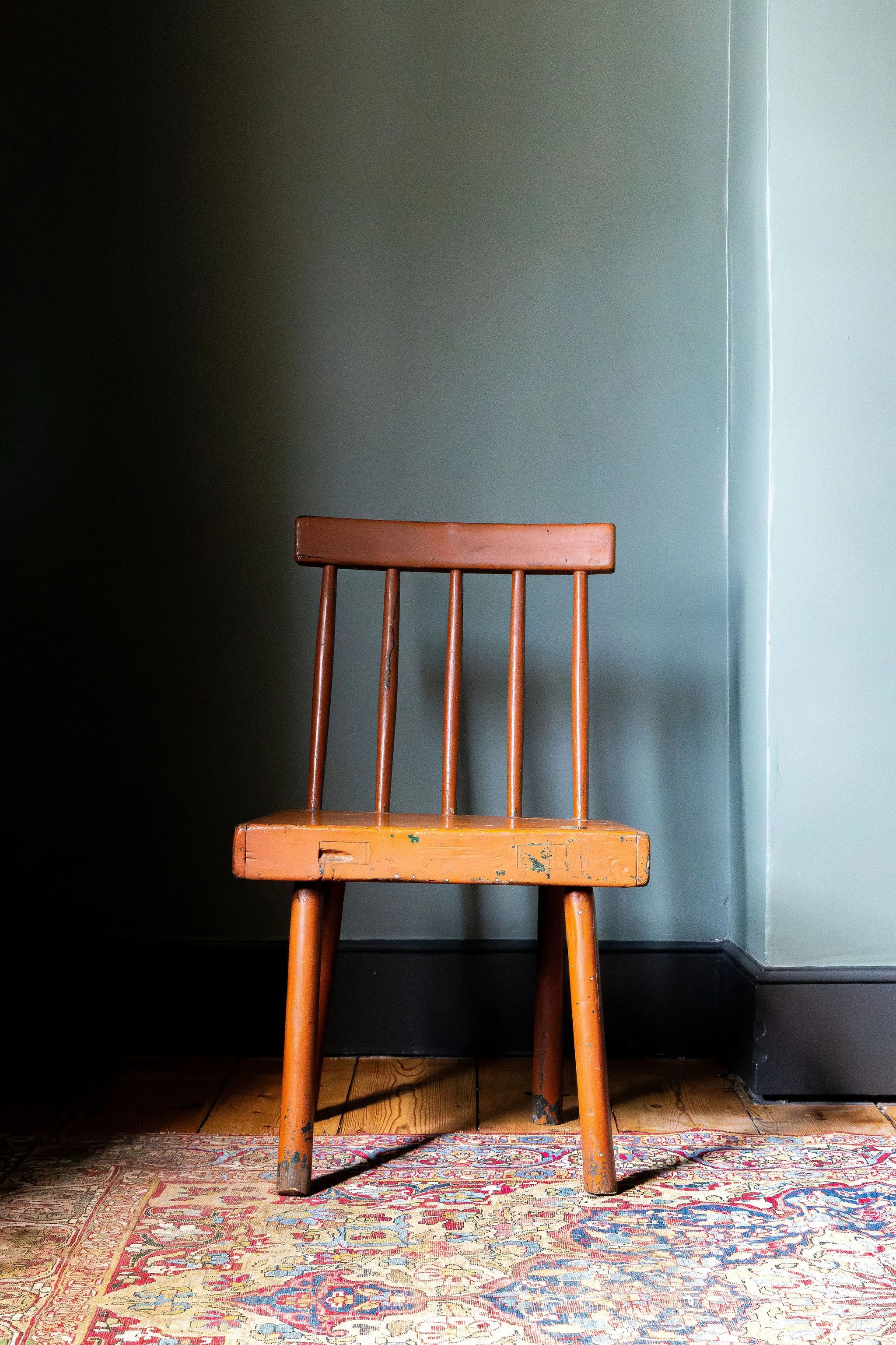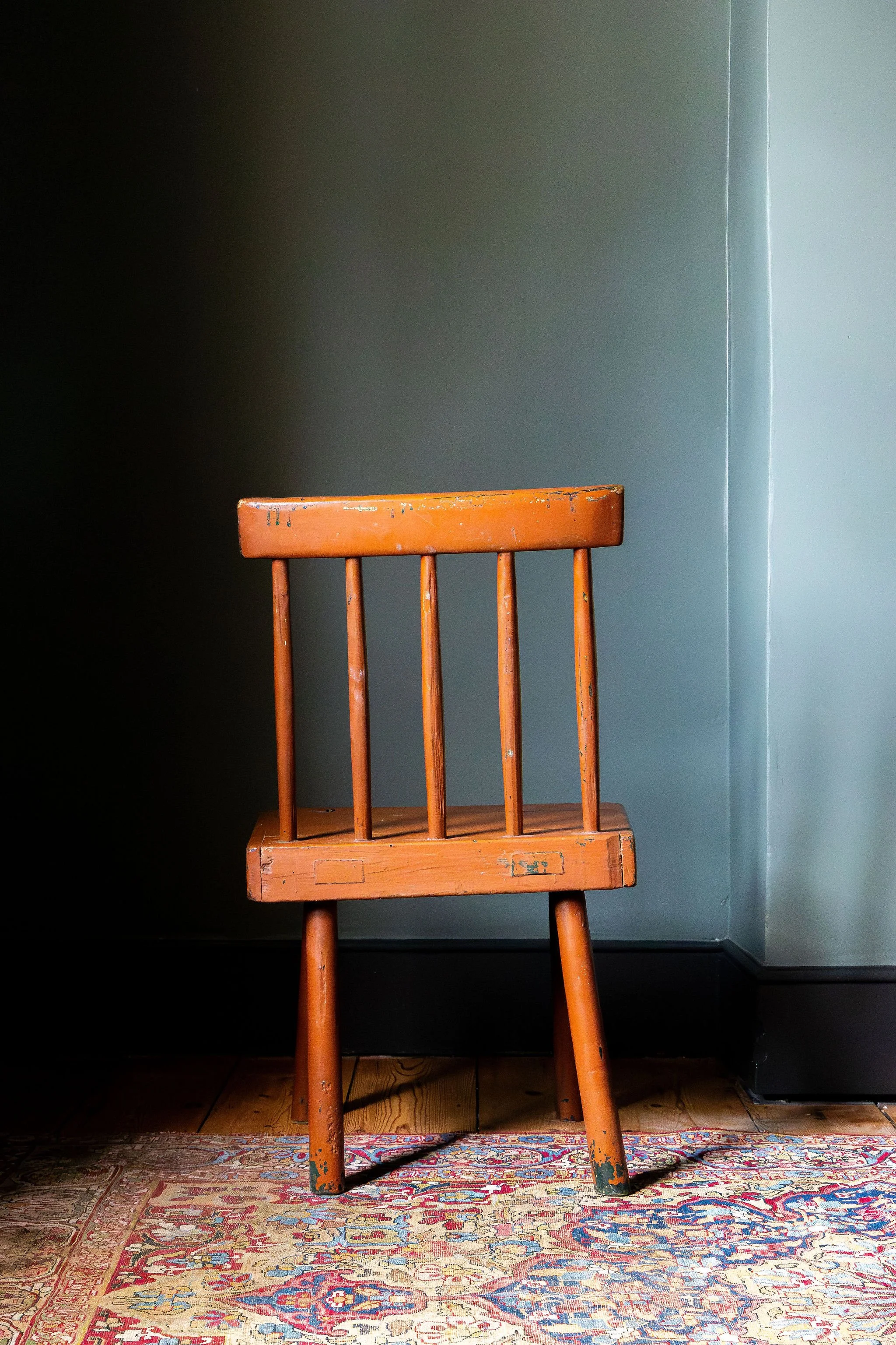 An attractive 19th Century Irish Hedge chair of traditional construction with historic red paint. A very pretty piece of Irish vernacular seating.