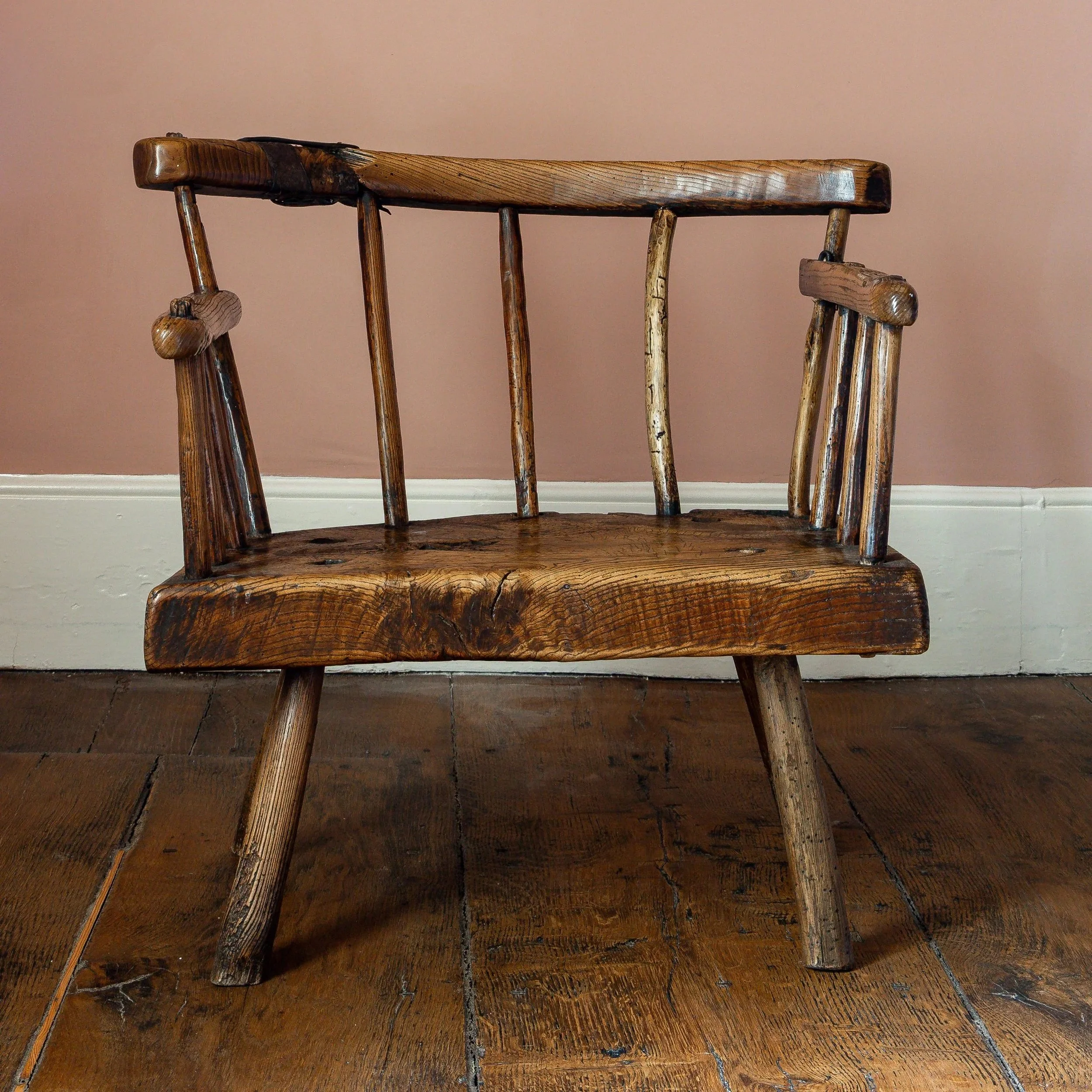 Quite often, the most suitably shaped pieces were found in hedges, which is why so many hedge chairs are made from mixed woods. This way of working was considered to be inferior at the time, but the method means that every hedge chair is wonderfully unique, and today their individuality and humble construction makes them hugely sought after by collectors.
