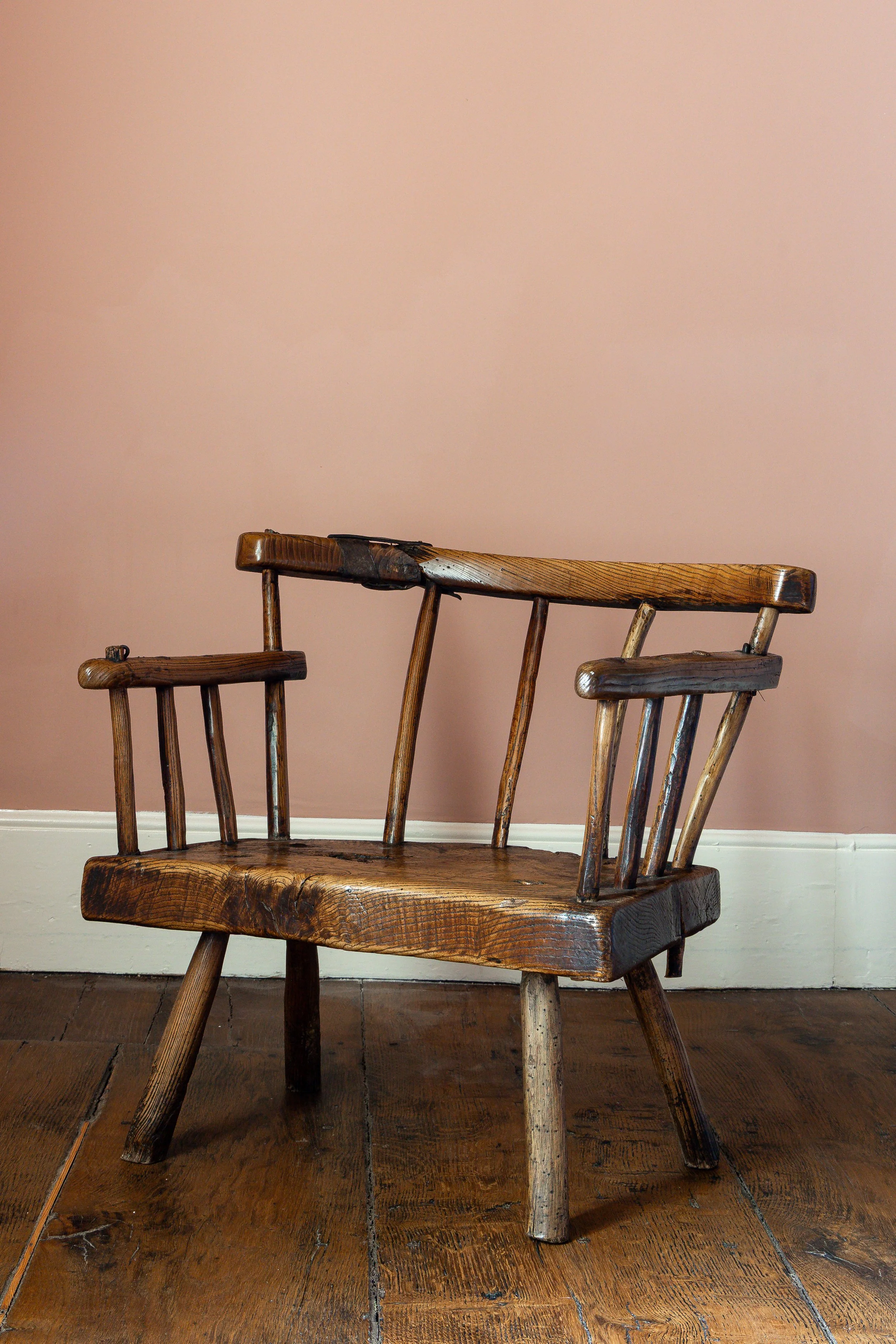 This chair is without doubt the best we’ve ever owned. It’s got everything we love in a chair, great size, fantastic colour, beautiful historic leather repair, thick slab seat, and an incredible shape and atmospheric presence. I love it so much I got a tattoo of it. Chairs like this don’t come along very often. In our house which is full of chairs it’s referred to as ‘the chair’. As good as it gets if you’re into vernacular furniture.